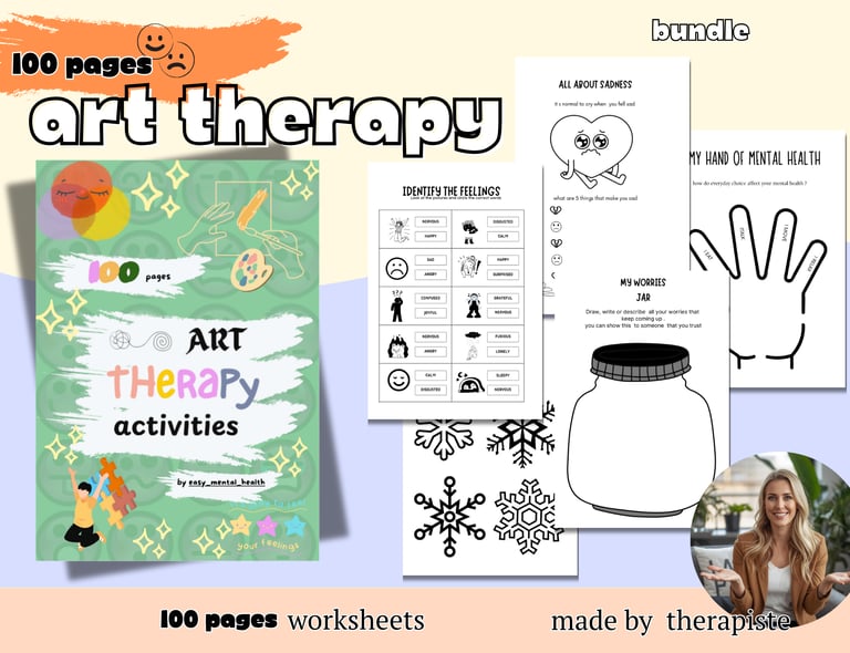 Beautiful art therapy printables designed to ease overwhelm, release emotions, and bring daily peace; for adults, kids, and therapists.